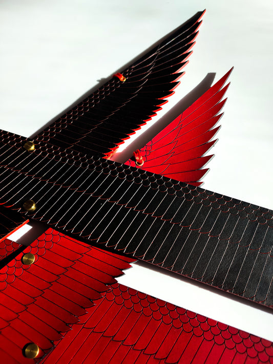WING HARNESS • Fashion Harness Armour Genuine Leather Ornate Fetishwear • Samurai Inspired • Red Black • LOH