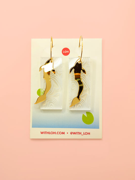 Asian Koi Fish Earrings • Mirror Red Gold Clear • Lucite Acrylic • Interchangeable Customisable • Asian Minimal Graphic Style