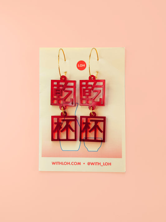 Kanpai Cheers Earrings 乾杯 • Clear Red Gold Silver Hoops