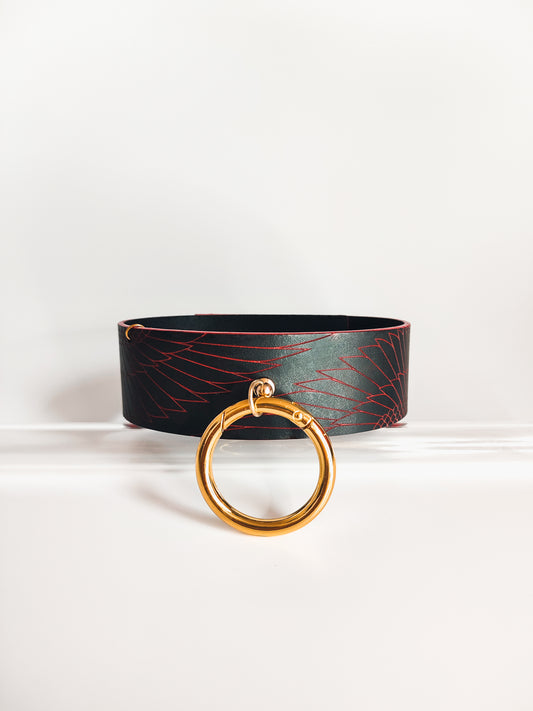 Genuine Leather Wing O-Ring Choker • Red or Black • Adjustable • With Velvet Gift Bag • LOH