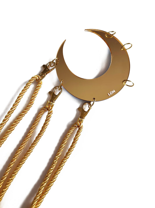 LUNA • Shibari Rope Harness & Belt in Gold Satin Rope Mirror Metallic • Crescent Moon • LOH