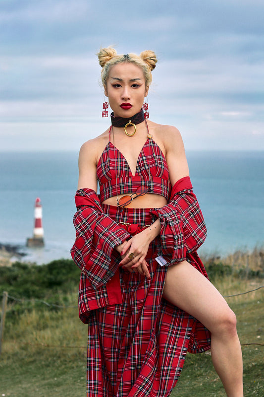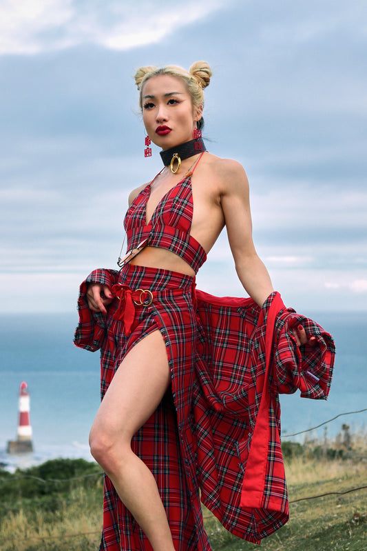 Punk Tartan Plaid Red Top Bralette Crop Top Bustier • LOH